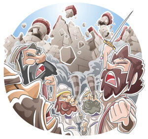 イスラエル軍はヨルダン川を渡り、エリコの町を滅ぼすときになりました。神が言われた通り、契約の箱と角笛を持った祭司たち、そしてすべての戦士たちが町の周りを回りました。1日1回、6日間回り、7日目は7回回りました。そしてイスラエル軍が、角笛を吹き鳴らし、ときの声を上げると、エリコの城壁は崩れ落ちました。イスラエル軍は町に攻め上り、あっという間にエリコの町を滅ぼしてしまいました。