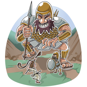 イスラエル人たちはペリシテ人たちと向かい合いました。ペリシテ人から代表戦士ゴリヤテという3m近い巨人が現れました。イスラエルが負けたら、ペリシテ人の奴隷にならなければなりませんでしたが、誰もゴリヤテに立ち向かうことのできる者はいませんでした。