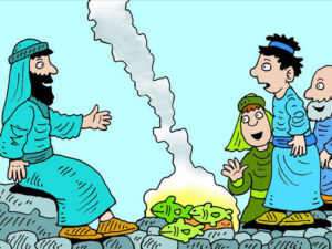 その時、ヨハネがイエスであることに気付き、ペテロに「主です」(7)と伝えました。すると、ペテロは、「上着をまとって、湖に飛び込」(7)み、イエスの元に向かいました。岸に着くと、弟子たちはイエスが用意していたパンと魚を食べました。