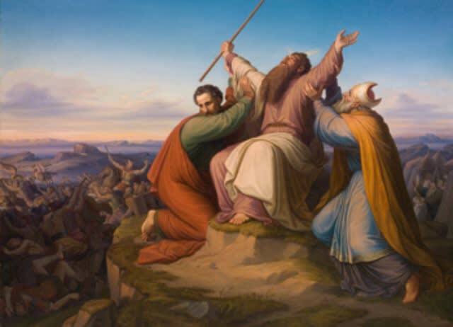 モーセが手を上げている時は、イスラエルが優勢になり、手を降ろしている時は、アマレクが優勢になりました。すなわち、モーセが祈っている間は、アマレクに勝利することができました。しかし、祈らなくなると、アマレクに負けそうになったのです。