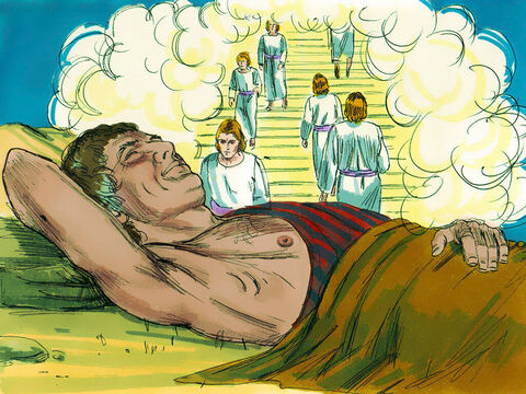 エサウは、ヤコブが祝福を奪ったことを知り、怒り、ヤコブに殺意を抱きました(27:41)。それを知ったリベカは、ヤコブを彼女の兄ラバンのもとへ逃がしました(27:43 28:5)。「ある所に着いた時」、ヤコブは「石」を「枕にして」野宿しました(11)。やがて、ヤコブは、天からの「はしご」を御使いが上り下りしている夢を見ました(12)。そして、主は、ヤコブを祝福して子孫を増え広がらせ、ヤコブと共にいて下さり、ヤコブを守り、再びカナンの地に連れ戻して下さると約束して下さいました(13-15)。ヤコブは目覚め、この夢に大いに励まされ、「主がこの所におられる」(16)、「こここそ神の家」(17)であると言い、枕にしていた石を立てて、油を注ぎ(18)、その場所を「ベテル」(19)と呼びました。